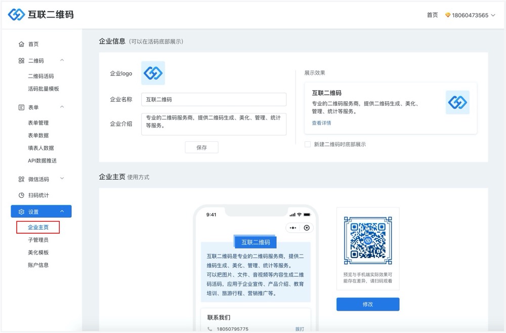 1. 在【管理后台 - 设置 - 企业主页】中创建主页。