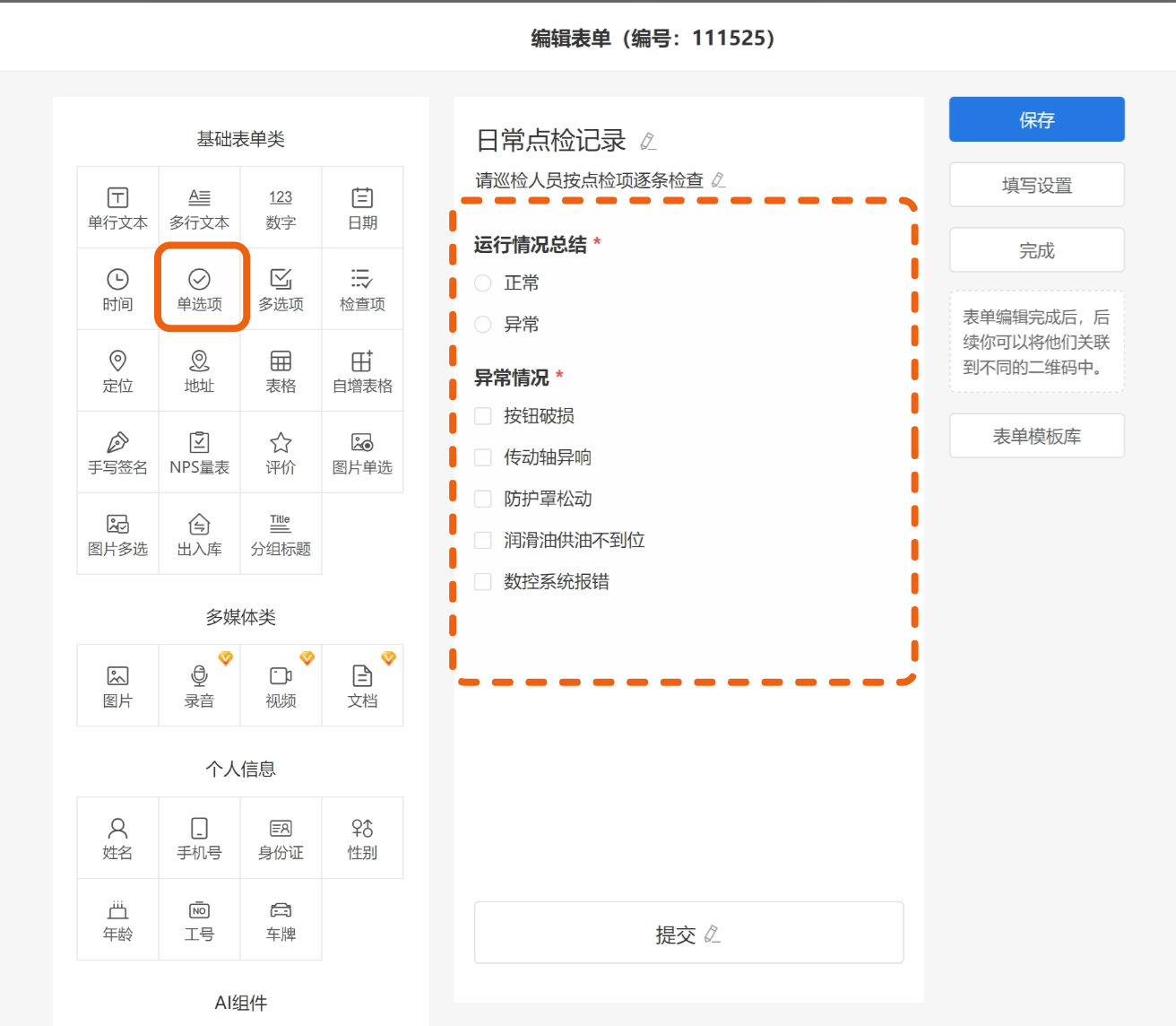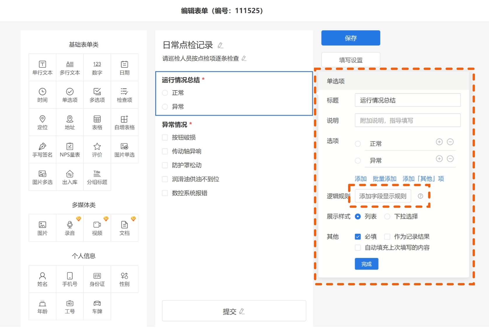 下面我们以“日常点检表单”为例: