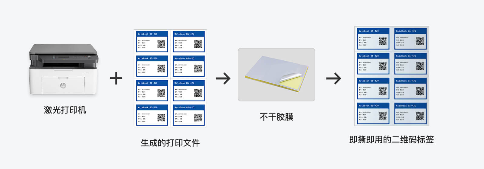 普通A4激光打印机即可打印,下载A4 PDF文件;购买预切好的A4不干胶,打印后,撕下背胶即可使用。