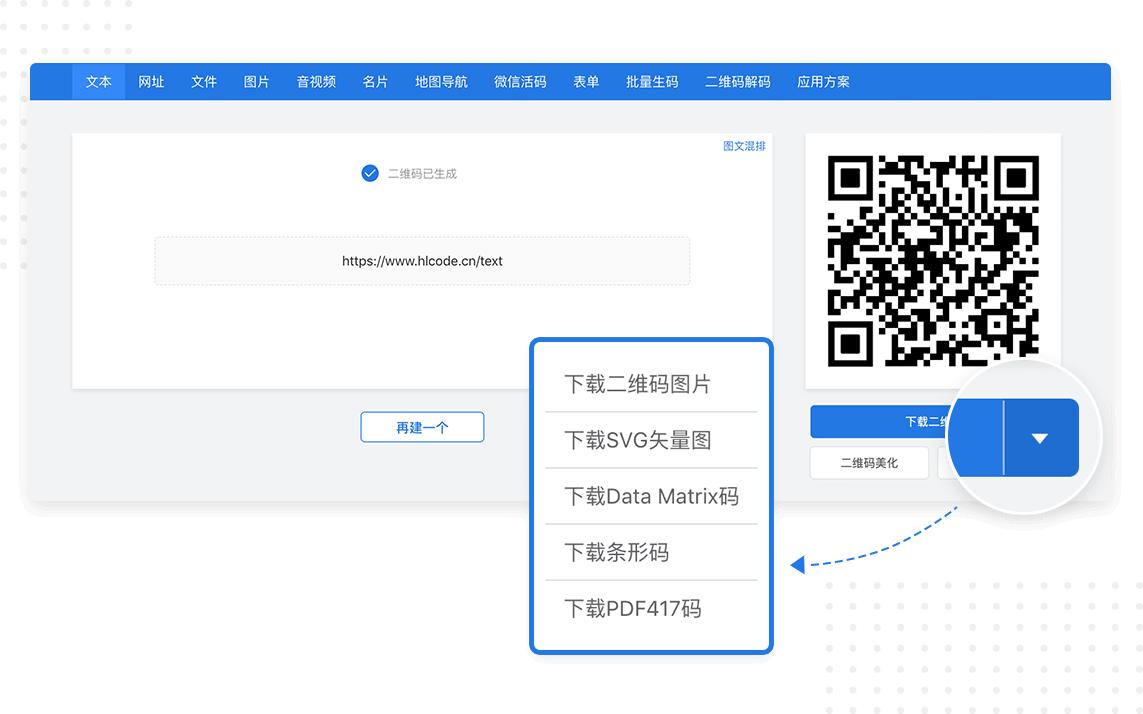 使用互联二维码生成器,只需三步,就能将汉字、英文、符号等任意文本内容转为可直接扫码读取的静态二维码,而且一次生成,永久有效。