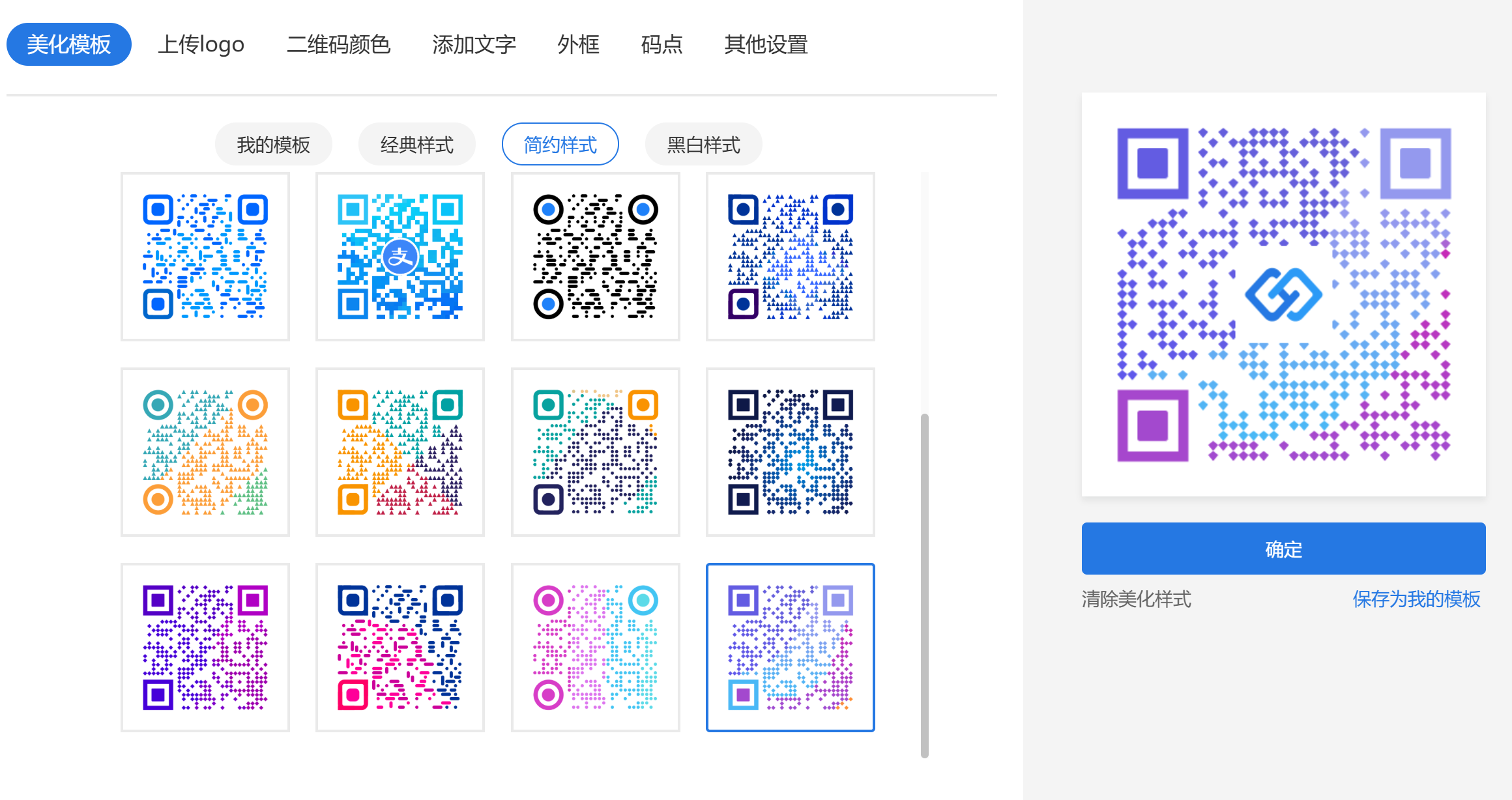 美化成功后,可将当前样式保存为“我的模板”,后续美化其他二维码时一键套用,保持品牌视觉统一。