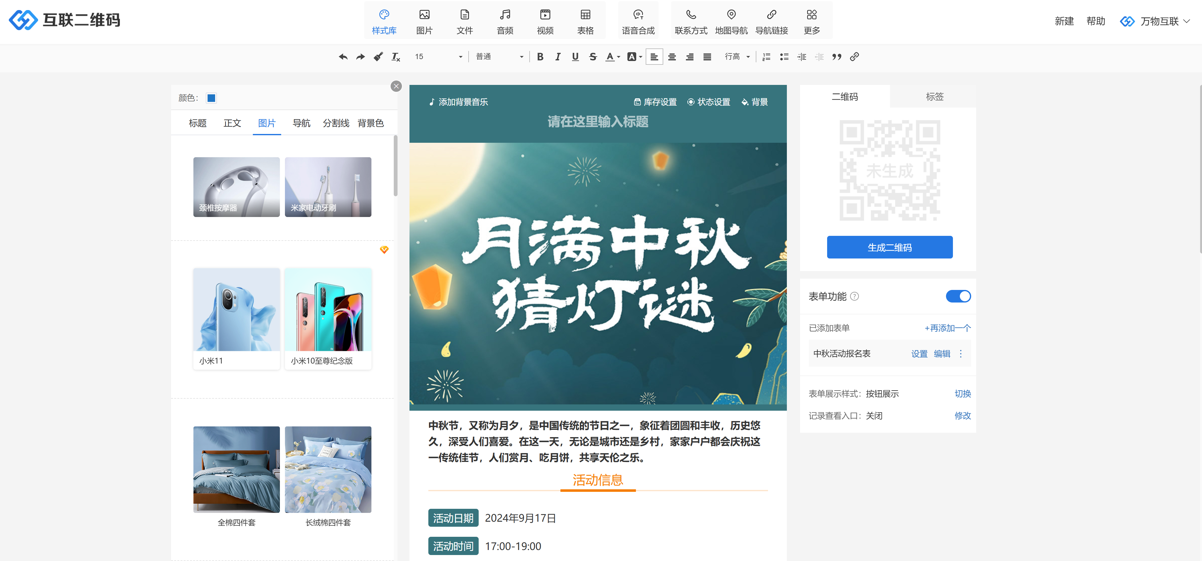 互联二维码生成器作为专业的二维码解决方案提供商,推出了一系列适用于中秋节场景的二维码应用,帮助企业、商家和个人打造更具创意和效率的中秋活动。