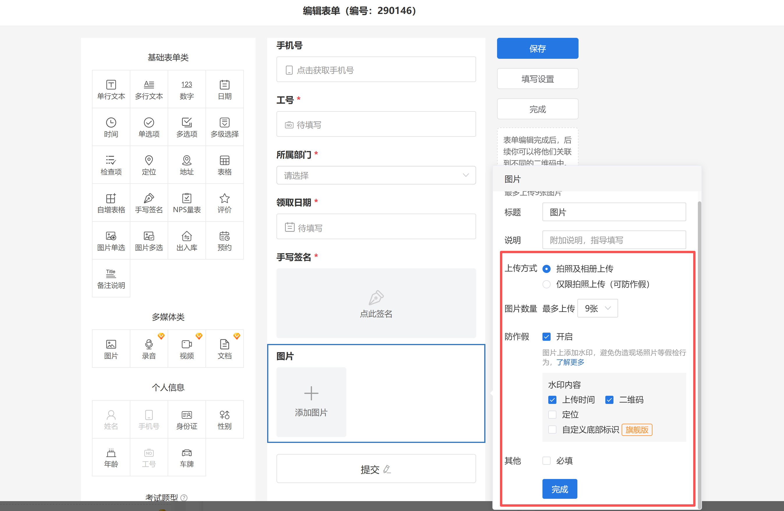 特别是在企业巡检、核销等场景中,可设置拍照水印、限制填写权限、限定扫码范围等功能,有效防止虚假填写,确保数据真实可靠。