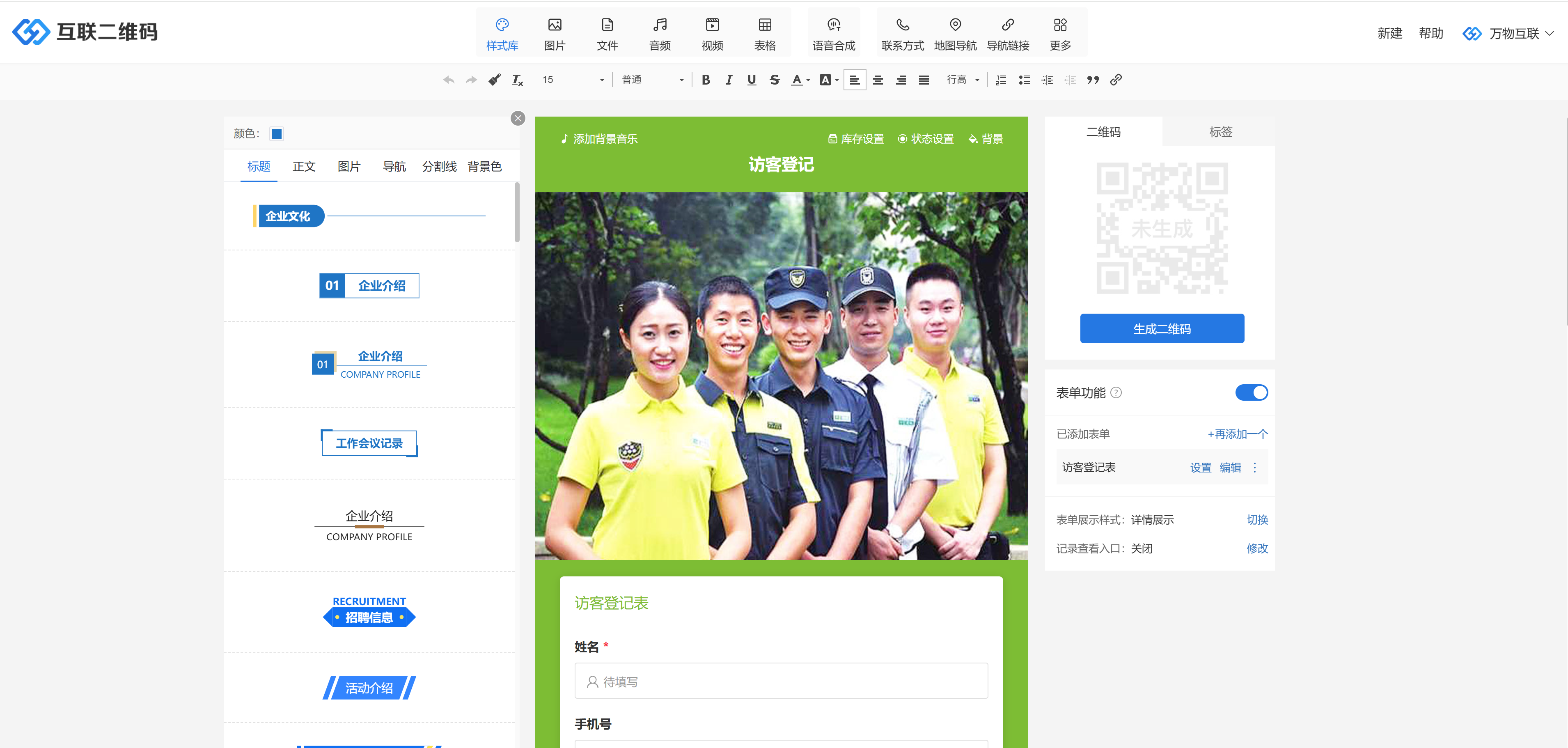 通过互联二维码生成器,物业可以快速制作访客签到二维码,实现: