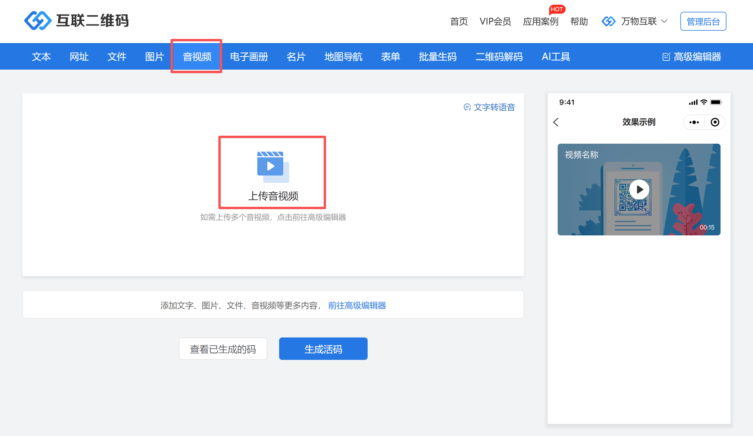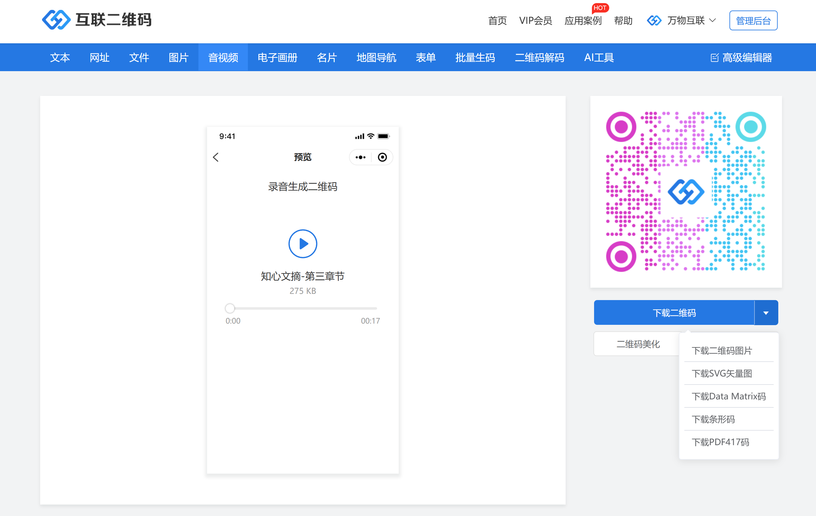 立即尝试互联二维码生成器,将您的声音,变成一扫即听的精彩。