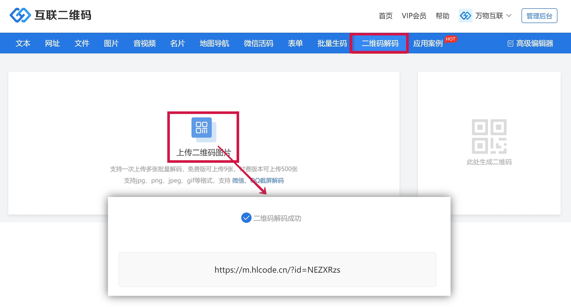 如果你经常需要生成、管理或检测二维码,欢迎体验互联二维码平台提供的【二维码解码】与【二维码生成】服务,一站式解决你的用码需求,安全、高效、可控。