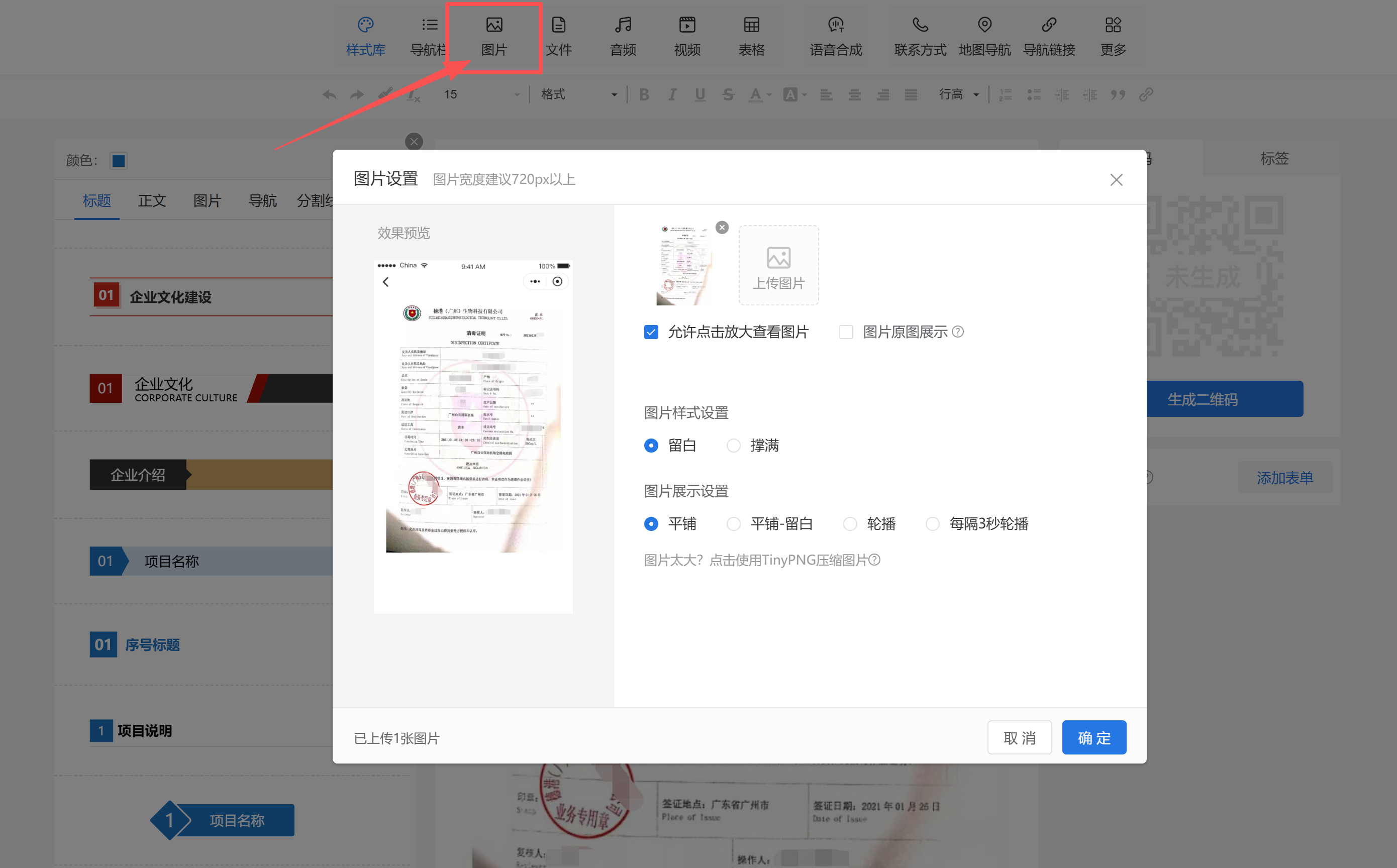 操作:在编辑器相应位置,直接上传新版《动物检疫合格证明》(产品证)的清晰扫描件或照片,以及产品外包装上的检疫验讫标志图片。平台支持图片、PDF等多种格式。