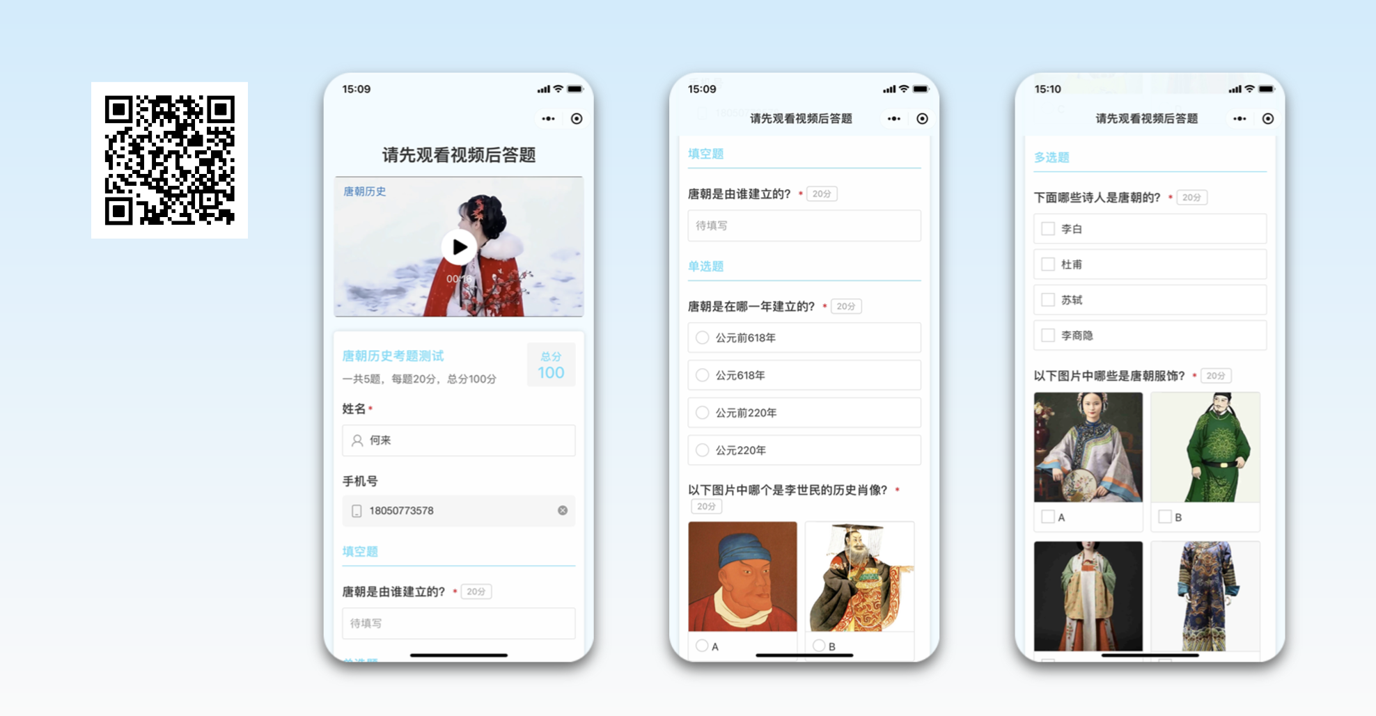 通过互联二维码的高级编辑器,你可以轻松将一个培训视频(如操作演示、安全讲解、课程录播)嵌入二维码中,并在同一页面中插入考试表单,实现“扫码即学、学完即考”的完整闭环。